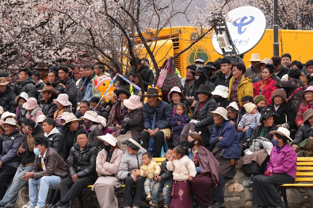 昌都市洛隆縣第十一屆俄西杏花文化旅游節(jié)開(kāi)幕式現(xiàn)場(chǎng)的觀眾。新華社發(fā) (格桑赤列攝)