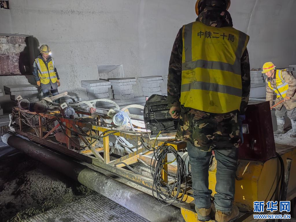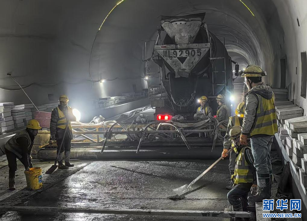 5月2日,工人們在然烏隧道進行混凝土路面澆筑工作。劉強 攝