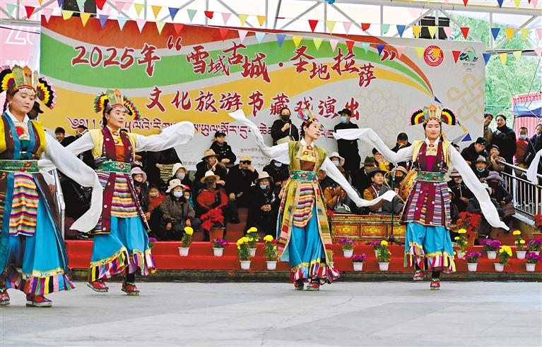 近日,“雪域古城·圣地拉薩”文化旅游節(jié)非遺主題活動在拉薩宗角祿康公園內開展,現(xiàn)場人潮涌動。非遺藏戲演員身著華服,以高亢唱腔演繹《朗薩雯蚌》選段,觀眾圍坐沉浸于雪域藝術魅力。非遺展銷區(qū)陳列著木雕、牛皮制品等傳統(tǒng)手工藝品?;顒尤嬲宫F(xiàn)了非遺保護傳承與利用的新進展和新成效。記者 唐斌 攝