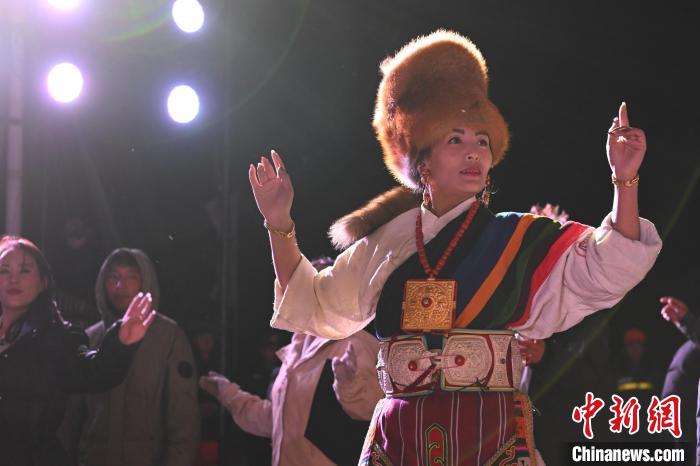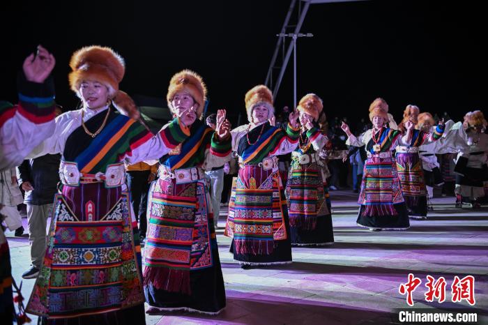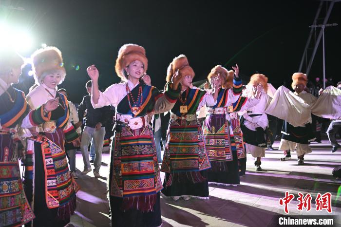 圖為“情定當雄”篝火鍋莊晚會文藝演出現(xiàn)場。中新社記者 貢嘎來松 攝