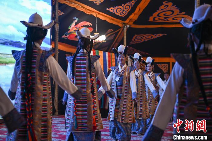 5月18日,西藏拉薩首屆“雪域古城·圣地拉薩”文化旅游節(jié)“情定當雄”篝火鍋莊晚會在當雄縣賽馬場熱鬧舉行。活動開場,當雄縣盛大的迎賓儀式,盡顯藏族人民的熱情好客。隨后,拉薩各縣區(qū)帶來極具地方特色的文藝節(jié)目,舞蹈、歌曲等表演精彩紛呈,展現(xiàn)了拉薩多元文化魅力。傍晚,游客市民在賽馬場黑帳篷中觀看非遺展示,深入了解藏文化精髓。夜幕降臨,眾人圍在篝火旁跳起鍋莊,歡聲笑語回蕩在高原夜空。圖為當雄牧民手持哈達參加迎賓儀式。中新社記者 貢嘎來松 攝