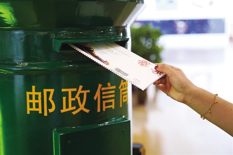 游客正在郵政服務(wù)點選購、寄出明信片。
