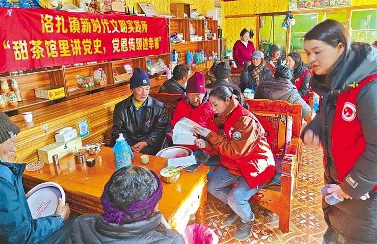 洛扎縣洛扎鎮(zhèn)新時代文明實(shí)踐所開展“甜茶館里講黨史 黨恩傳頌述幸福”主題宣講活動。