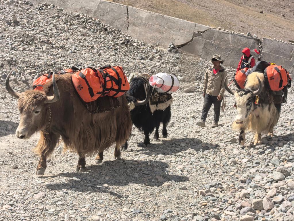 在徒步路線的起點廣場上,一隊隊牦牛隊整裝待發(fā),游客的行李正被穩(wěn)穩(wěn)地放上牛背。不少外籍游客雇傭本地牧民,利用牦牛馱運行李并提供向?qū)Х?wù)。陳賢剛介紹,旅游業(yè)已成為巴嘎鎮(zhèn)經(jīng)濟的主導(dǎo)產(chǎn)業(yè),當?shù)鼐用袷杖胫屑s一半來自旅游相關(guān)工作。
