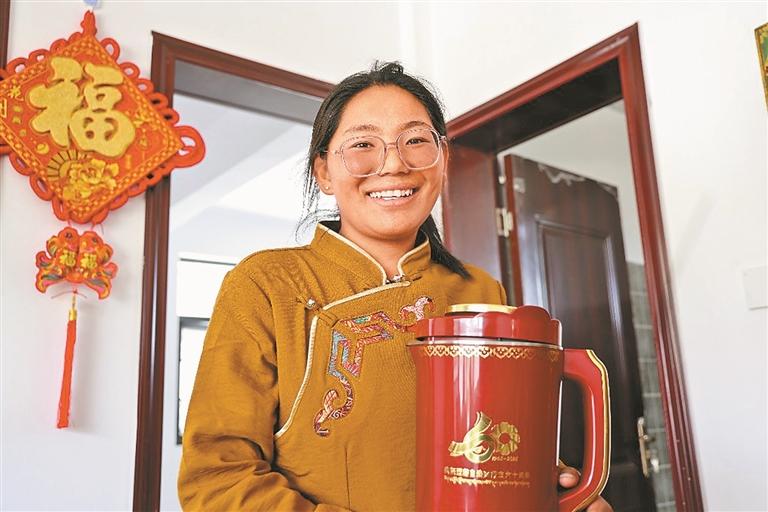 “真沒(méi)想到中央代表團(tuán)的禮物能這么快送到我家。”旦增普赤一邊忙著把打好的酥油茶裝進(jìn)暖瓶,一邊興奮地說(shuō)道:“光看著這壺,心里就像喝了酥油茶一樣,暖暖的?!?/p>