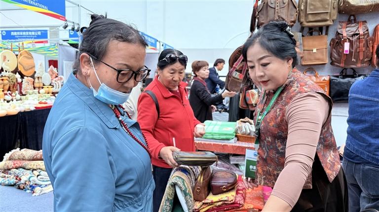 展會現(xiàn)場人頭攢動,熱鬧非凡。150家參展商帶來的特色產品鋪滿了各個展位,空氣中彌漫著多元氣息。法國紅酒的醇厚酒香、印度尼西亞咖啡的濃郁焦香、伊朗藏紅花的獨特芬芳交織在一起,與西藏本土青稞制品的麥香、高原蜂蜜的甜香相互映襯。在巴基斯坦展位前,參展商Asif正熱情地向顧客展示手工羊毛地毯,“我已經連續(xù)三年參加,之前銷量都很好,這次帶來的地毯紋樣融入了藏式元素,希望能更受歡迎?!?/p>