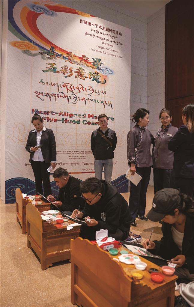 市民、游客現(xiàn)場(chǎng)體驗(yàn)唐卡繪制。