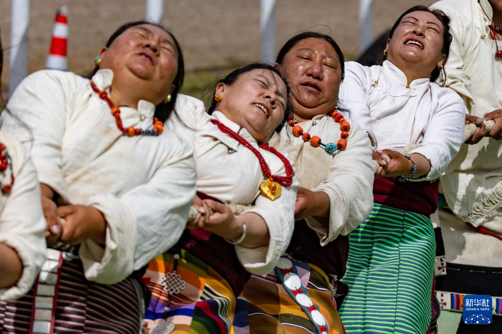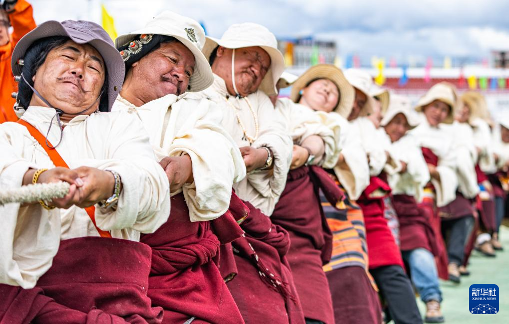 9月6日,在那曲市恰青賽馬節(jié)現(xiàn)場,選手們參加拔河比賽。新華社記者 丁增尼達(dá) 攝