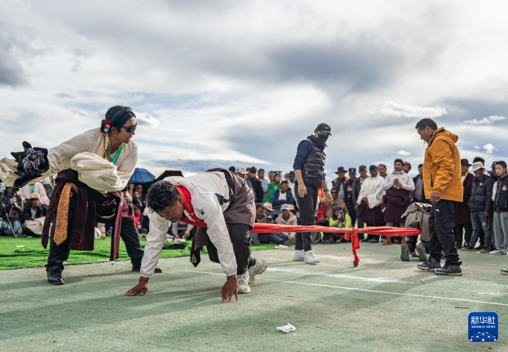 9月6日,在那曲市恰青賽馬節(jié)現(xiàn)場,選手們參加押加比賽。新華社記者 丁增尼達(dá) 攝