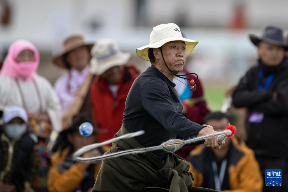 9月6日,在那曲市恰青賽馬節(jié)現(xiàn)場,一名選手們參加烏爾朵比賽。新華社記者 姜帆 攝
