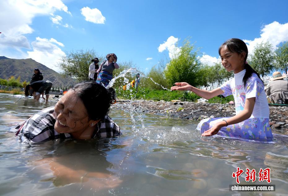 9月13日,西藏拉薩民眾迎來沐浴節(jié)。每年藏歷7月,西藏民眾迎來為期7日的傳統(tǒng)民俗節(jié)日沐浴節(jié),藏語稱為“嘎瑪日吉”?!恫蒯t(yī)養(yǎng)生》中記載,藥王星當(dāng)空,江河湖海等一切水源皆具藥性,七日內(nèi)沐浴可清凈業(yè)障。圖為民眾在拉薩河邊戲水。中新社記者 李林 攝