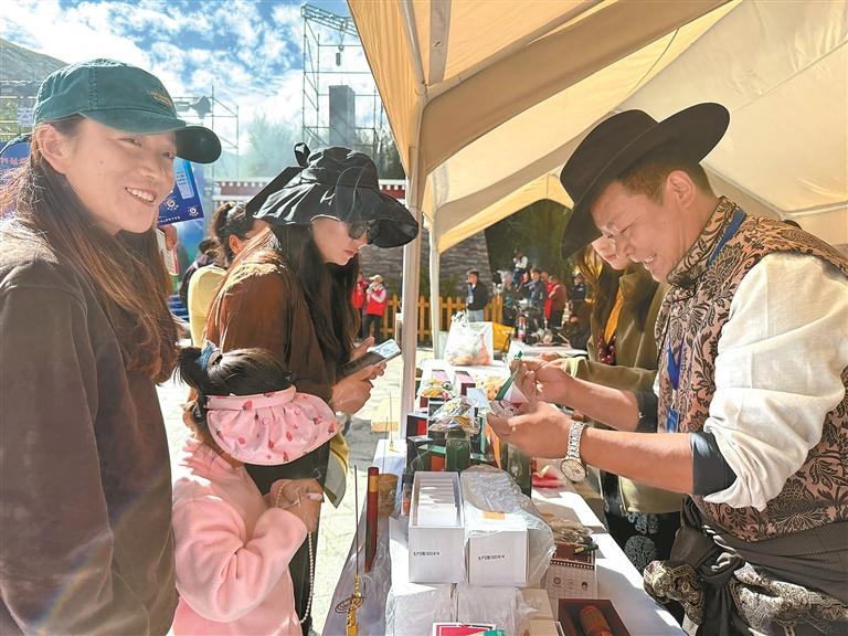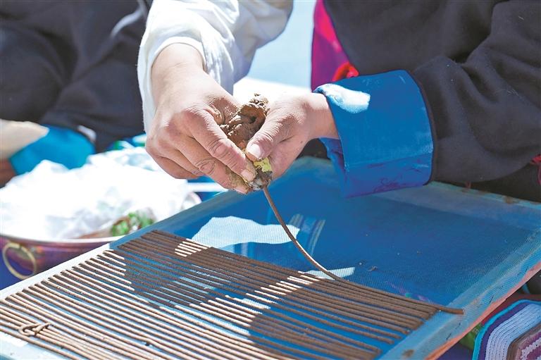 “今天我們帶來了6種藏香文創(chuàng)產品,分別有安神、提神、清潔空氣等系列,這些年我們除了在線下銷售,還要感謝尼木縣委、縣政府積極與線上各大平臺接洽,讓我們的藏香通過線上銷售,走出了尼木,讓北京、南京、天津等城市的客戶通過線上購買。所有藏香都是由縣委、縣政府組織的易地搬遷戶制作,這讓不少群眾不僅能就近就業(yè),還能照顧家里。特別感謝黨和政府對藏香保護和發(fā)展所做的各項工作。”縣級非物質文化遺產傳承人洛桑旺堆在活動現場說。
