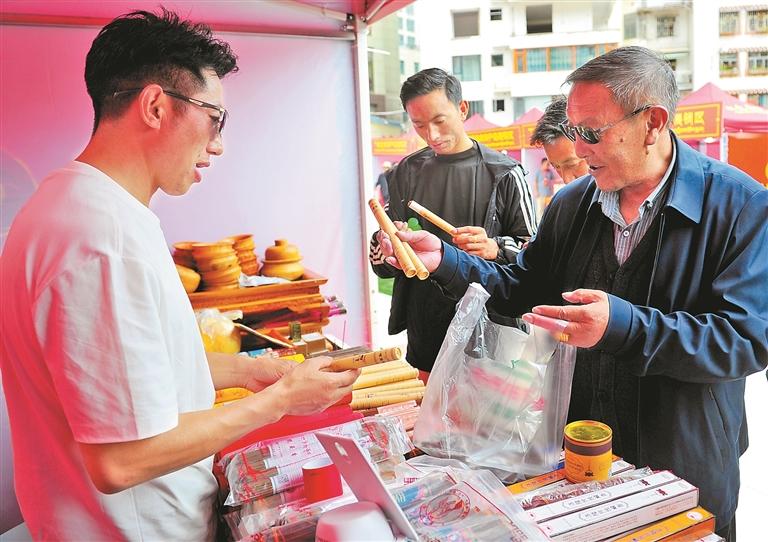 特色產(chǎn)品展銷柜臺,市民正在選購洛隆藏香。記者 平措朗加 溫凱 攝