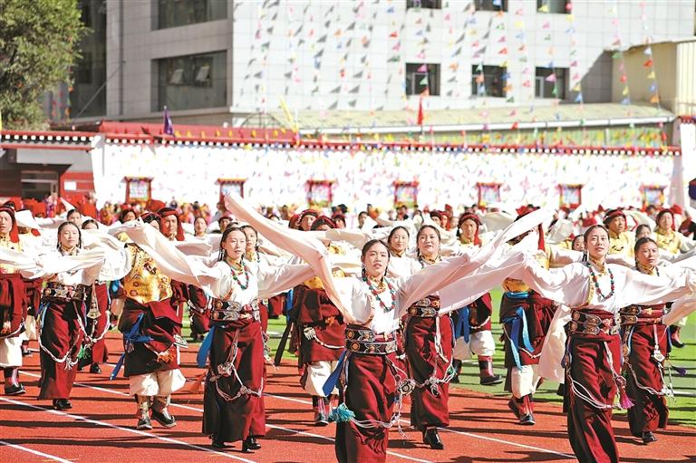 開幕式上的群眾游行方隊。記者 平措朗加 溫凱 攝