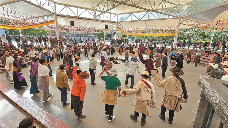 市民在宗角祿康跳鍋莊舞。