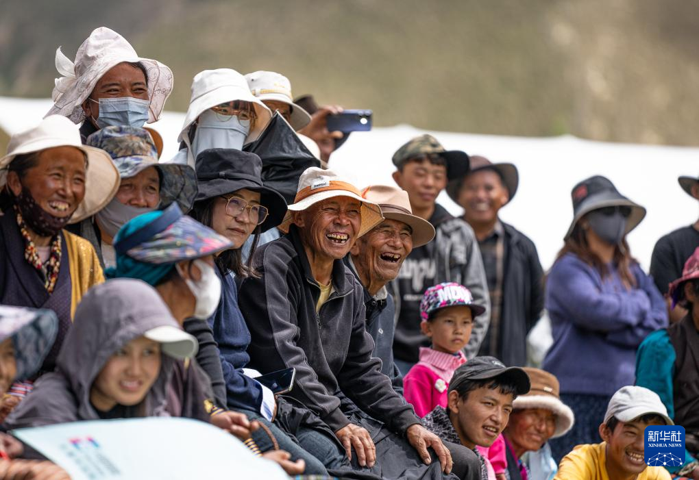 在山南市瓊結(jié)縣強(qiáng)吉村第二屆林卡大會(huì)現(xiàn)場(chǎng),當(dāng)?shù)厝罕娫谟^看演出(9月13日攝)。新華社記者 丁增尼達(dá) 攝