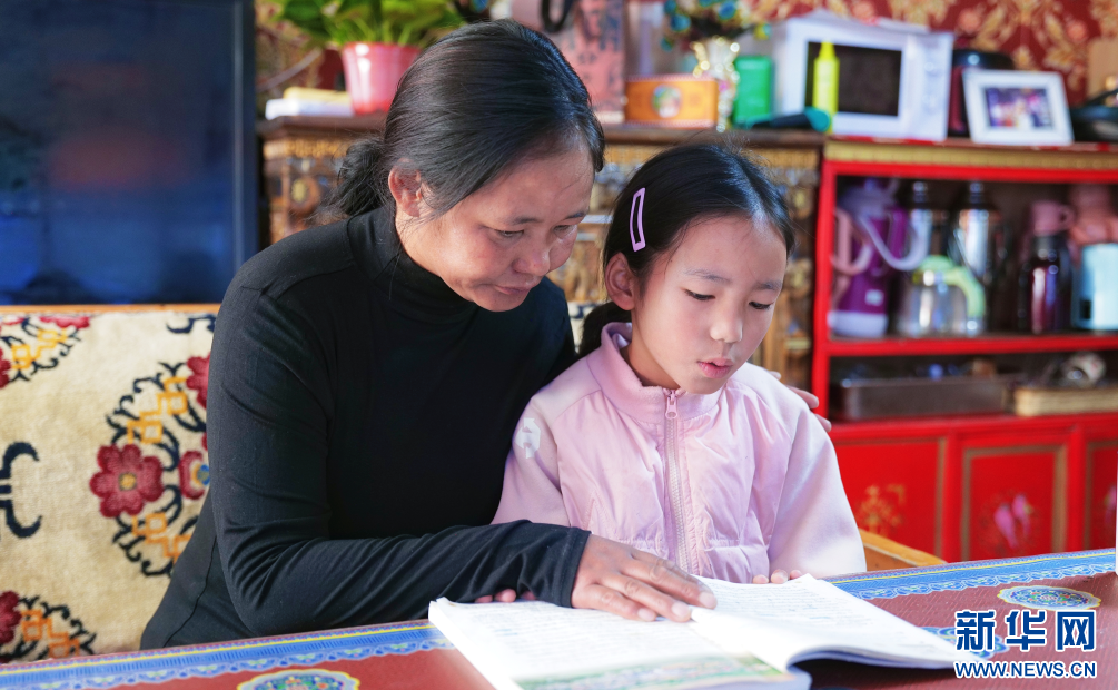 圖為尼吉在陪小女兒讀書(9月28日攝)。新華網(wǎng) 柑丹鴦琦攝