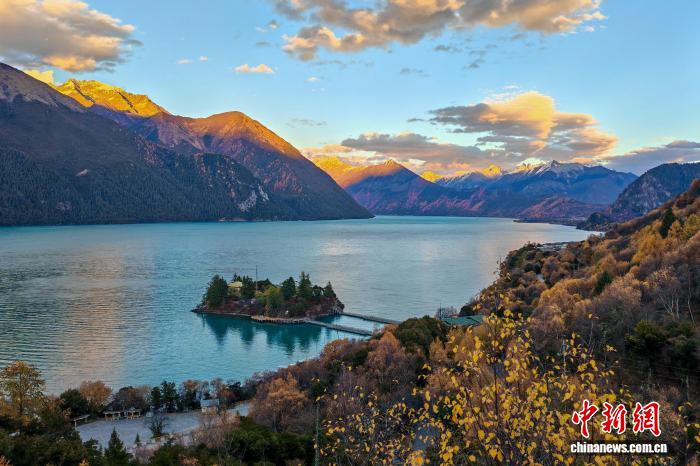 11月8日傍晚,西藏林芝巴松措景區(qū)迎來晚霞風(fēng)光。中新社記者 江飛波 攝