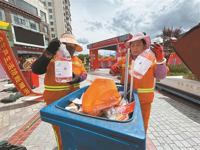 圖為昌都市的環(huán)衛(wèi)工人在進(jìn)行垃圾分類。記者 白瑪澤旺 攝