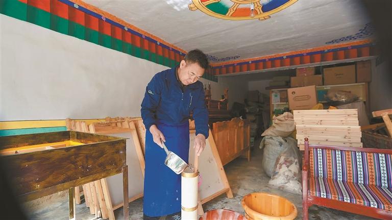 創(chuàng)辦合作社后,他在保留藏紙耐腐蝕、抗蟲蛀優(yōu)勢(shì)的同時(shí),開(kāi)發(fā)出燈籠、筆記本、相框等貼合現(xiàn)代生活的文創(chuàng)產(chǎn)品,讓這門技藝從“家族傳承”走向“群眾共享”。合作社成立至今,已先后吸納10余名當(dāng)?shù)厝罕妼W(xué)習(xí)藏紙制作,從煮料、搗漿、晾曬到塑形,阿旺曲央都毫無(wú)保留地傳授技藝,讓不少曾靠零散務(wù)工為生的村民,擁有了穩(wěn)定的“手藝收入”。村民查果便是其中一位受益者,“以前打零工收入不穩(wěn)定,現(xiàn)在跟著阿旺曲央老師學(xué)做藏紙,每月能掙2000余元,在家門口就能上班?!?/p>