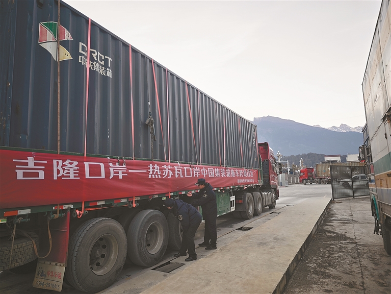 近日,兩輛滿載貨物的中國(guó)集裝箱式貨車在拉薩海關(guān)所屬吉隆海關(guān)監(jiān)管下順利通關(guān),駛向尼泊爾。這是西藏首次實(shí)現(xiàn)中國(guó)集裝箱式貨車跨境運(yùn)輸,標(biāo)志著中尼國(guó)際道路運(yùn)輸便利化水平邁上新臺(tái)階。