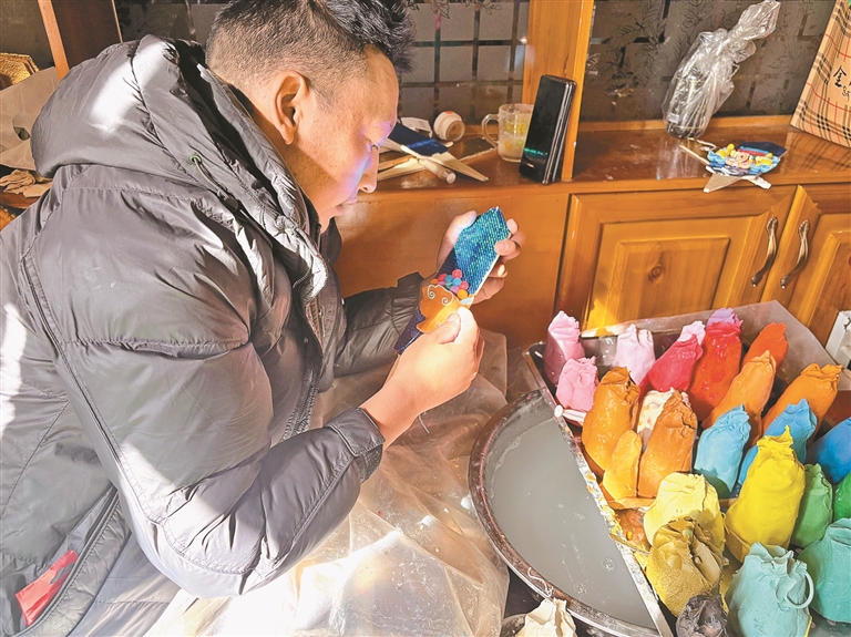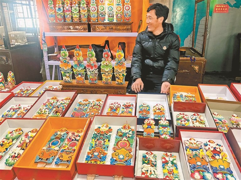 “我從2013年開(kāi)始學(xué)做酥油花,到現(xiàn)在有了不小的長(zhǎng)進(jìn)。”次仁指著眼前的酥油花作品介紹道,這些圖案有的象征家庭和睦、民族團(tuán)結(jié),有的祈愿老人康健、稚童茁壯?!耙郧皼](méi)學(xué)這門(mén)手藝的時(shí)候,只能在家閑著。后來(lái)跟著老師系統(tǒng)學(xué)習(xí)制作酥油花,不光掌握了這門(mén)手藝,還能靠它養(yǎng)活自己和家人?!贝稳恃哉Z(yǔ)間滿是感激,談及未來(lái)更是充滿期待,他表示,等自己技藝精進(jìn)、達(dá)到一定造詣后,也想像老師那樣收徒傳藝,有十足的信心把這門(mén)非遺手藝好好傳承下去。