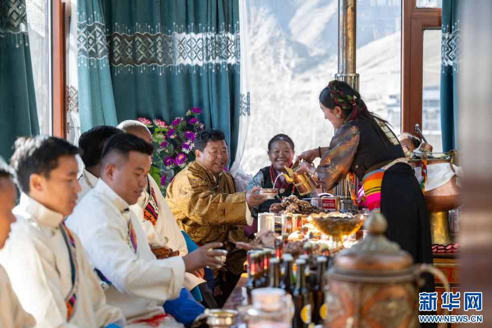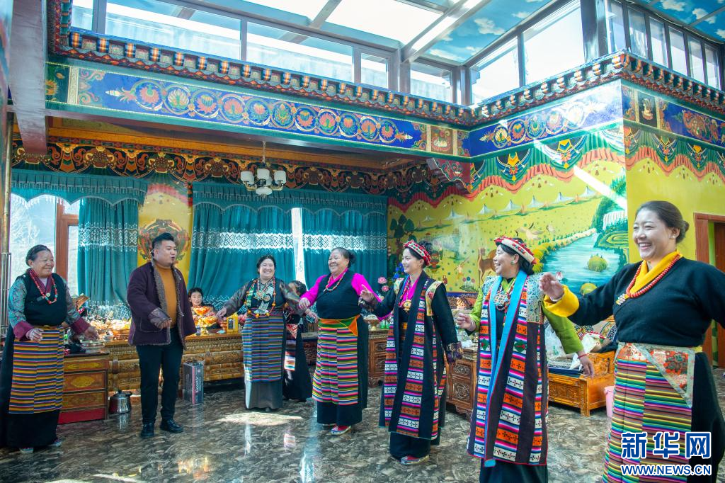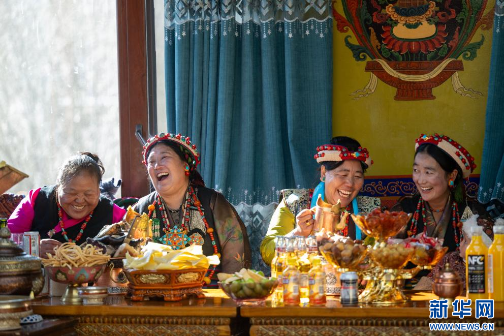 1月20日是藏歷12月2日,也是日喀則農(nóng)家新年初二。西藏自治區(qū)日喀則市桑珠孜區(qū)聶日雄鄉(xiāng)楚松村村民多吉旺堆一家及親朋好友相聚在家里,一起喝著青稞美酒,吃著香噴噴的牛羊肉,載歌載舞喜過農(nóng)家新年。