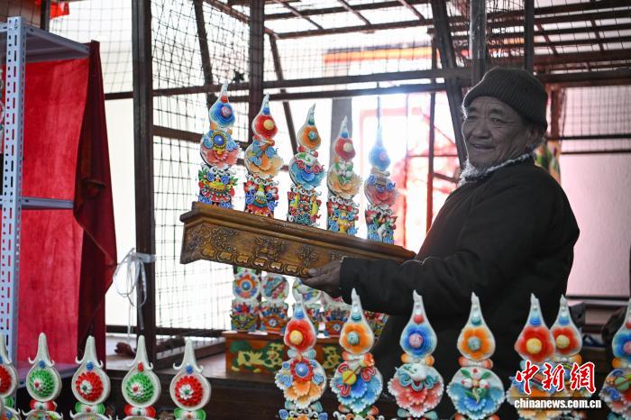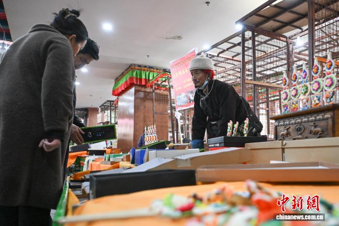 圖為市民在八廓商城選購年貨酥油花。中新社記者 貢嘎來松 攝