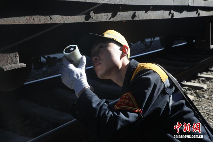 根據(jù)規(guī)定,貨檢作業(yè)必須兩人一組,分列車輛兩側(cè)同步逐車檢查。對貨物裝載加固、篷布苫蓋和施封情況及車輛的門、窗、蓋、閥的關(guān)閉情況進(jìn)行檢查。拉薩西站到發(fā)線在1000米到1500米之間,列車編組長,他們用腳步丈量安全,每進(jìn)行一次作業(yè)大概行走兩公里,一個(gè)班平均走行十幾公里,貨檢30列車、1200輛車輛,是確保高原鐵路運(yùn)輸安全的“安全哨卡”。