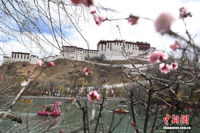 3月8日,西藏拉薩宗角祿康公園,市民乘游船賞春。陽(yáng)春三月,古城拉薩楊柳發(fā)芽、桃花初放,春意漸濃。中新社記者 貢嘎來(lái)松 攝
