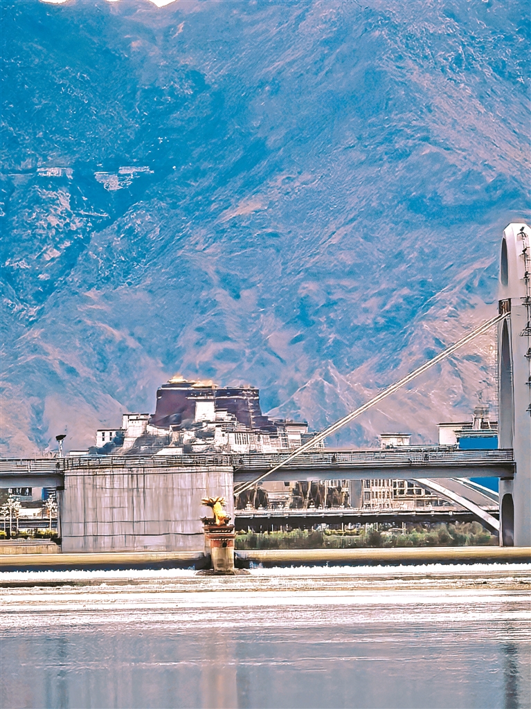圖為拉薩河特大橋旁遙望布達(dá)拉宮。