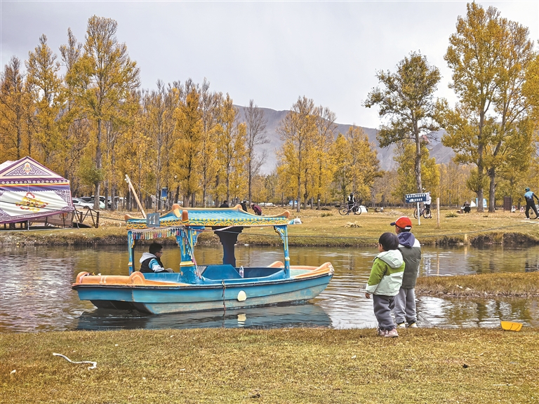 林周的神秘樹林與河畔草地,是拉薩人安放心靈的自然秘境。色彩鮮亮的游船靜靜停泊在水邊,如同綻放在河面的格?;ǎ_闊的草地與蔥郁的林木相擁,陽光毫無保留地灑落在每一寸土地上,勾勒出原生態(tài)的自然之美。這里遠(yuǎn)離城市的喧囂,空氣清新,景致悠然,每逢閑暇時(shí)節(jié),便有市民驅(qū)車前來,在山水間卸下疲憊,在自然中感受愜意,讓城市與自然的聯(lián)結(jié)愈發(fā)緊密,也讓平凡生活多了一份詩意與自在。