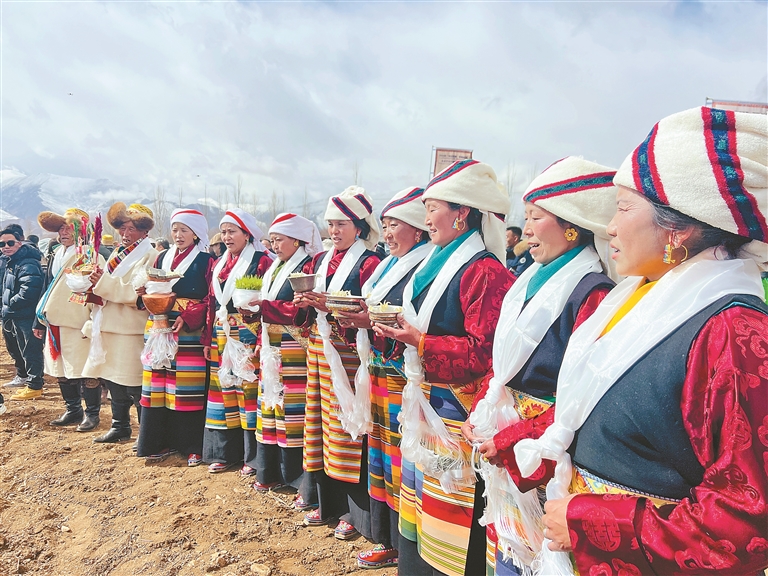 春耕春播儀式上,村民們高舉青稞酒,唱響吉祥歌,祈愿五谷滿倉、農(nóng)事順?biāo)?。記?央金 攝