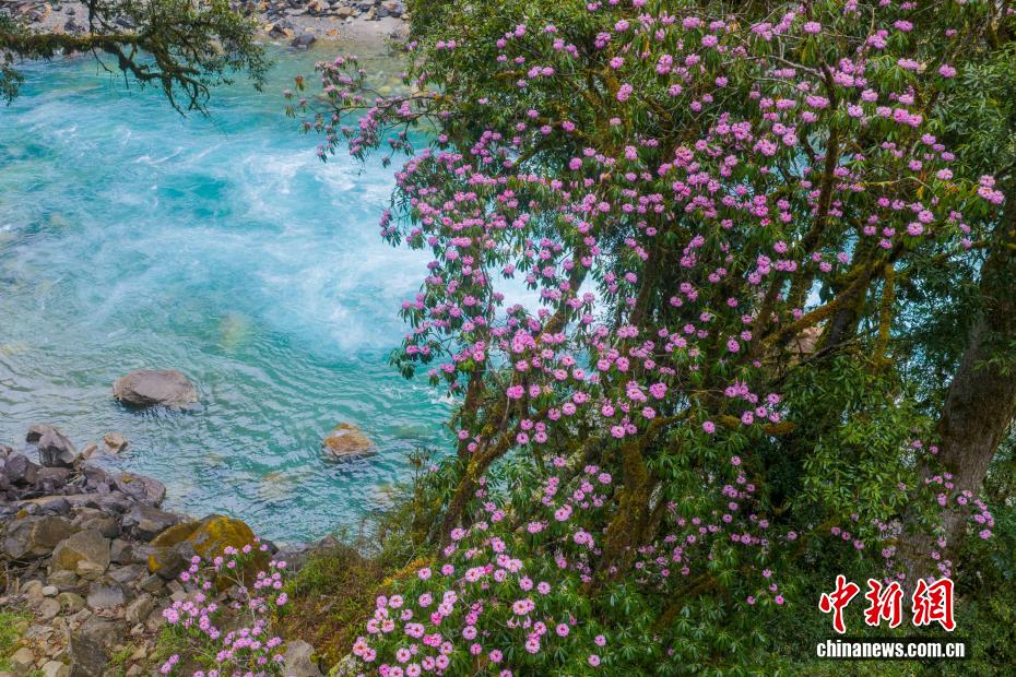近日,流經(jīng)西藏那曲市嘉黎縣至林芝市波密縣的易貢藏布(也稱易貢河)流域,迎來高山杜鵑最佳觀賞期。作為雅魯藏布江的二級支流,易貢藏布兩岸山巒疊嶂,高山峽谷間,成片高山杜鵑競相綻放。粉白、紫紅的花朵點綴于蒼松翠柏之間,與蜿蜒的河流相互映襯,構成一幅壯麗的高原生態(tài)畫卷。圖為3月28日,奔騰的易貢藏布與盛開的高山杜鵑。