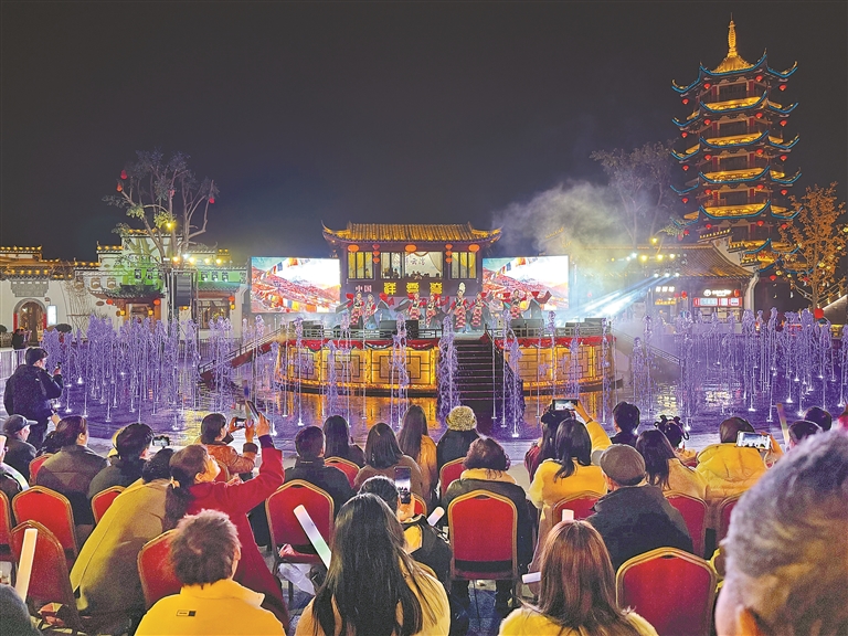 在湖北省云夢(mèng)縣博物館里,古老藏戲與千年秦簡(jiǎn)隔空對(duì)話;在祥云灣文旅景區(qū)音樂噴泉舞臺(tái)上,《吉祥昂仁》藏戲舞演員宛如格?;ㄊ㈤_在水光瀲滟間;在楚王天下大舞臺(tái)上,《大鵬山》六弦琴音雄渾豪邁、舞步粗獷奔放,將神山的巍峨與雪域的壯闊搬到江漢平原;在胡金店萬畝油菜花海中,《多彩的哈達(dá)》為春日花海增添了濃郁的民族風(fēng)情;在安陸、孝昌等周邊縣市,《同心結(jié)·幸福緣》舞蹈節(jié)奏歡快、《日喀則我為你牽掛》三重唱旋律悠揚(yáng),將高原遼闊與南國柔美完美融合……