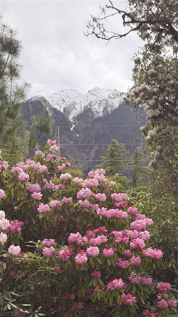近日,記者跟隨踏青人流,從拉薩市區(qū)自駕前往林芝市波密縣八蓋鄉(xiāng)。進(jìn)入八蓋鄉(xiāng)境內(nèi),眼前的景致便如畫卷般層層鋪展,而最讓人心動(dòng)的,是那片盛開在雪山腳下的花海。春日的八蓋鄉(xiāng),漫山遍野的高山杜鵑肆意綻放,粉、紅、紫、白交織成絢爛花海,尋春的腳步踏過花叢,沾著細(xì)碎的花瓣,人也仿佛浮在花的海洋里,連呼吸都帶著清甜的香氣,目之所及皆是絕美的春日畫卷。沿著當(dāng)?shù)卮蛟斓亩霹N花徒步環(huán)線前行,偶爾還能在花海間遇上矮矮的草屋,非常適合拍照打卡。