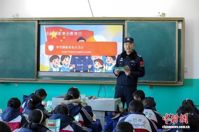 圖為里孜邊檢站民警走進課堂,開展“全民國家安全·爭做國家安全小衛(wèi)士”主題活動。劉海東 攝