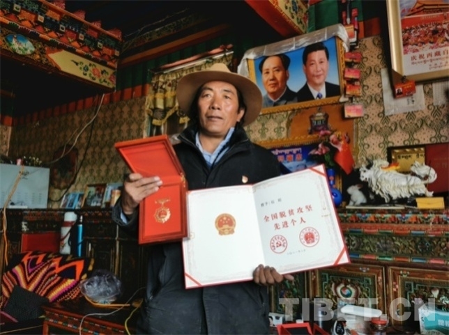 石旺展示全國脫貧攻堅先進(jìn)個人榮譽(yù)證書。 德吉卓瑪 攝