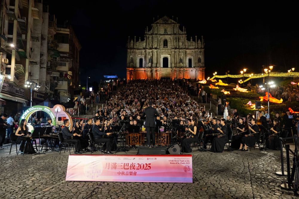 10月6日拍攝的在大三巴牌坊舉行的“月滿(mǎn)三巴夜2025”中秋音樂(lè)會(huì)。新華社發(fā)(張金加攝)