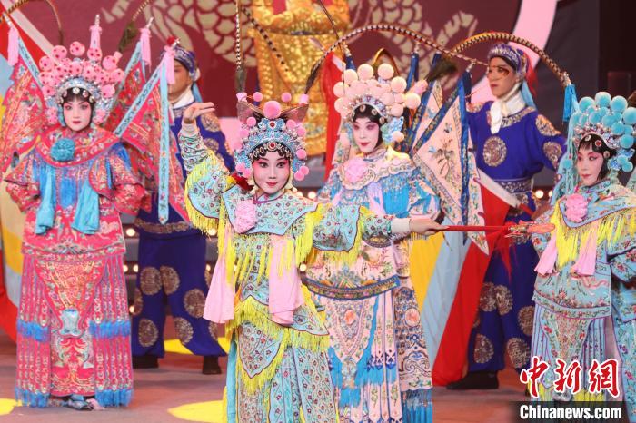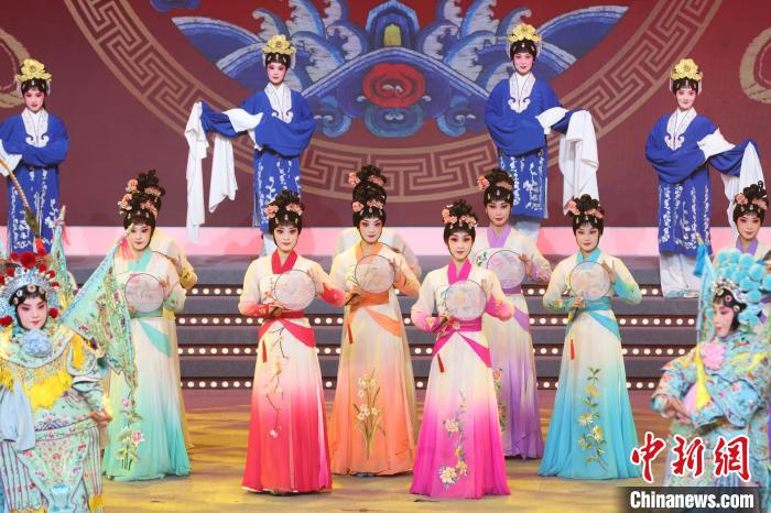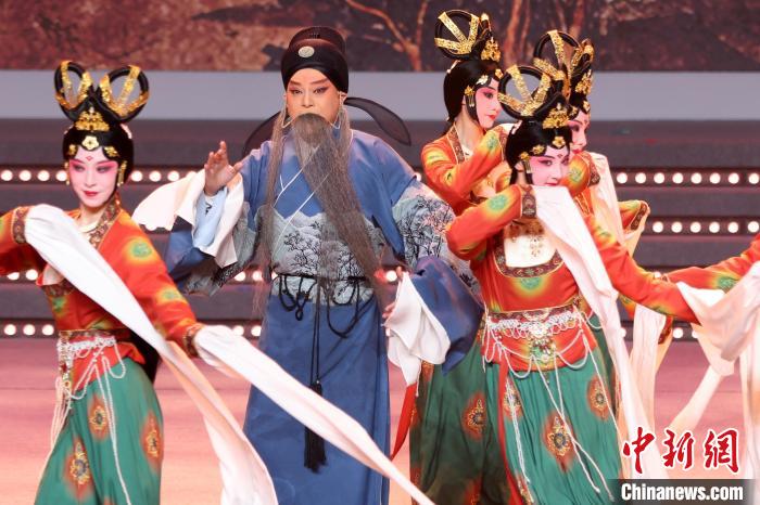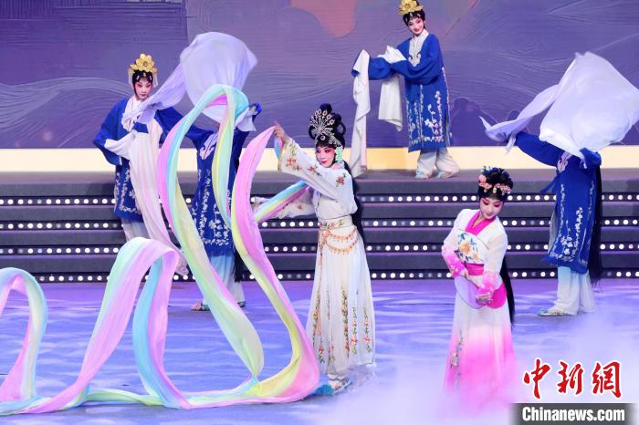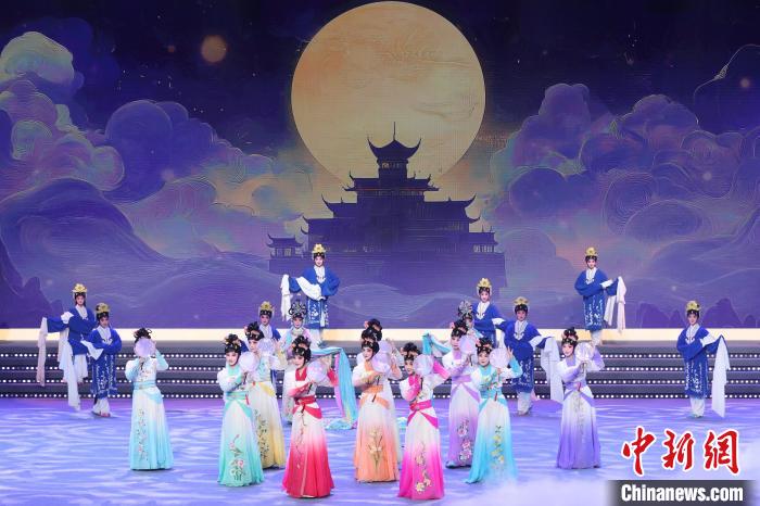 9月10日晚,2024江蘇中秋戲曲晚會(huì)在江蘇廣電荔枝大劇院上演,晚會(huì)緊扣“中秋”和“戲曲”兩大元素,將傳統(tǒng)節(jié)日內(nèi)涵與戲曲藝術(shù)融為一體,戲曲界各劇種名家陳少云、趙志剛、竺小招、周東亮、李奕潔、陳澄、李曉旭、施夏明等“梅花獎(jiǎng)”“紫金文化獎(jiǎng)?wù)隆薄拔娜A表演獎(jiǎng)”獲得者輪番登臺(tái),與近年來涌現(xiàn)出的優(yōu)秀青年演員同臺(tái)演出,凸顯戲曲文化的傳承與創(chuàng)新,為觀眾帶來一個(gè)流光溢彩的戲曲之夜。圖為戲曲演員們?cè)谖枧_(tái)上表演節(jié)目。中新社記者 泱波 攝