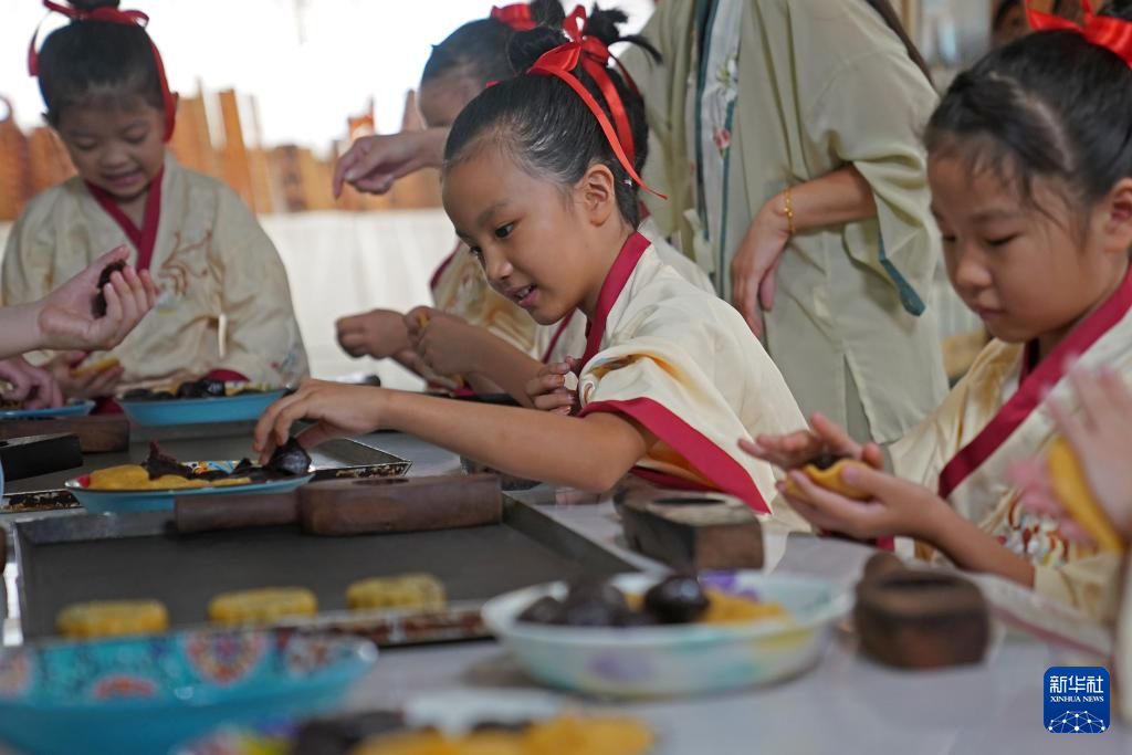 9月11日,孩子們在活動上體驗傳統(tǒng)手工月餅制作。新華社記者 萬象 攝
