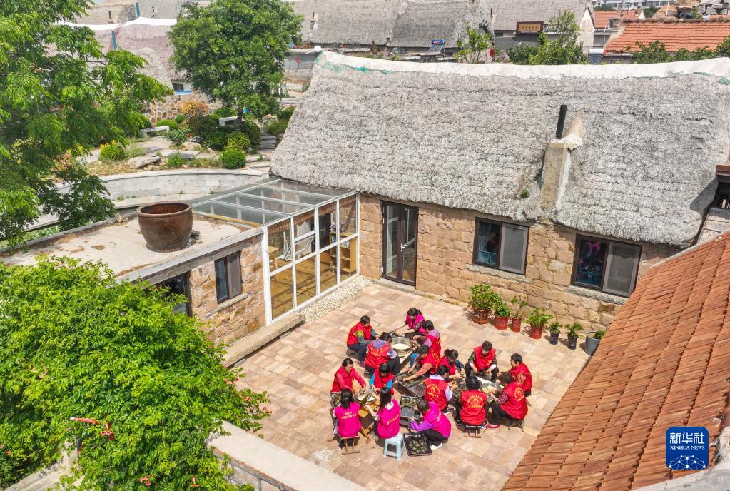 6月19日,在山東省榮成市俚島鎮(zhèn)大莊許家村暖心食堂,志愿者在包粽子。新華社發(fā)(李信君 攝)