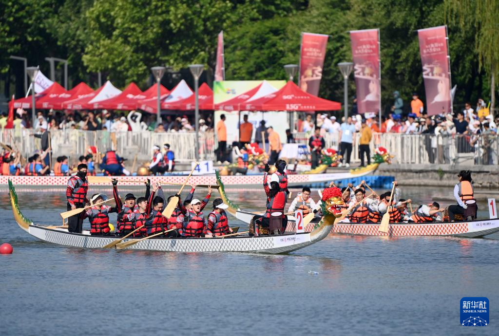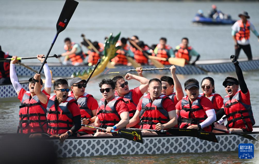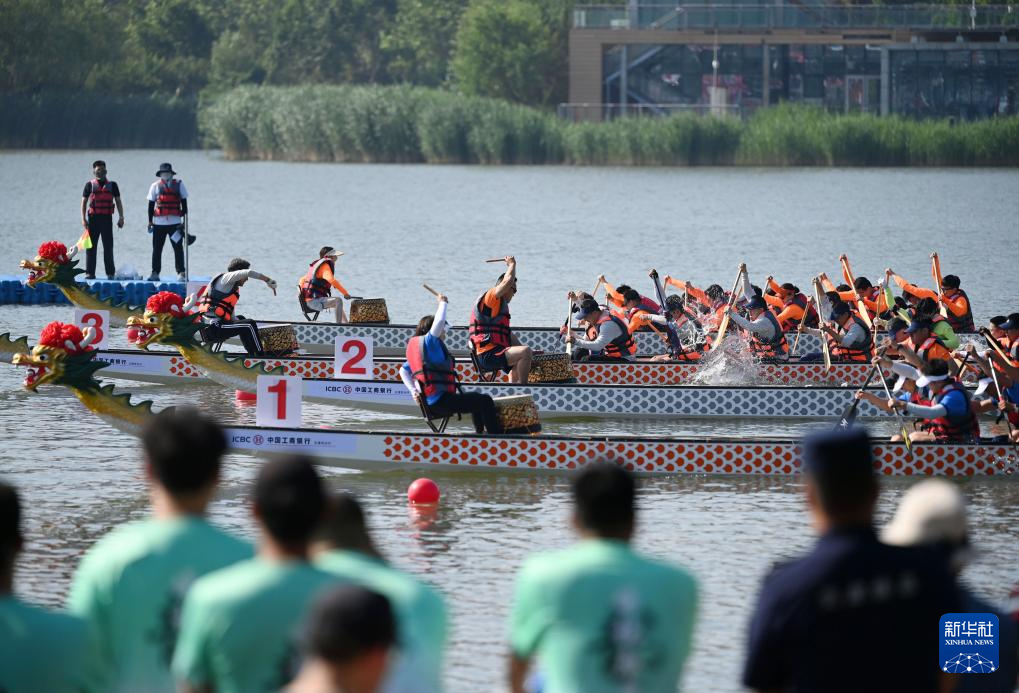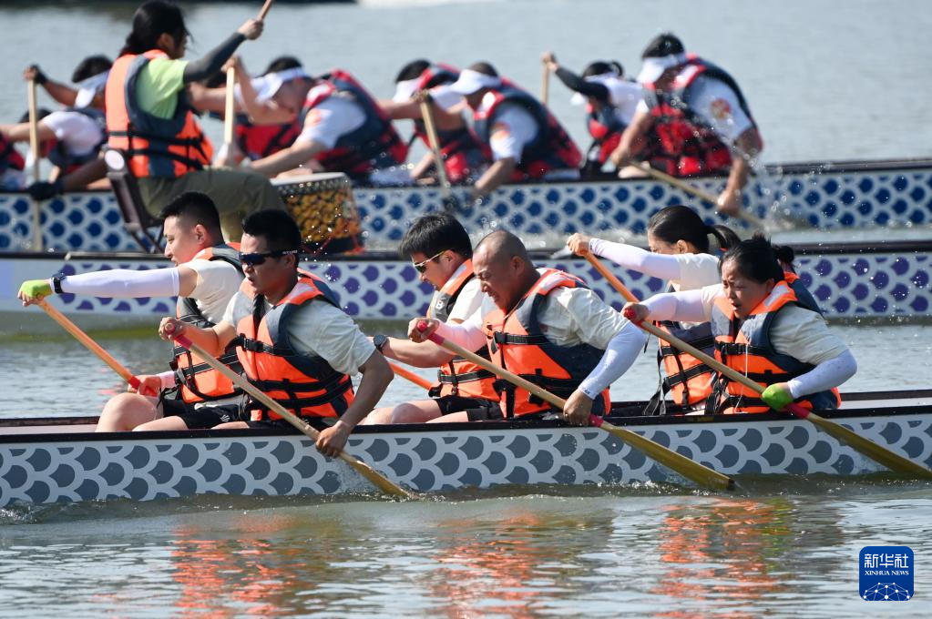 當(dāng)日,2025年天津港保稅區(qū)龍舟大賽在天津空港經(jīng)濟(jì)區(qū)西湖舉行,轄區(qū)內(nèi)的20支企事業(yè)單位代表隊(duì)同臺(tái)競(jìng)技,奮楫競(jìng)渡,迎接端午節(jié)的到來。