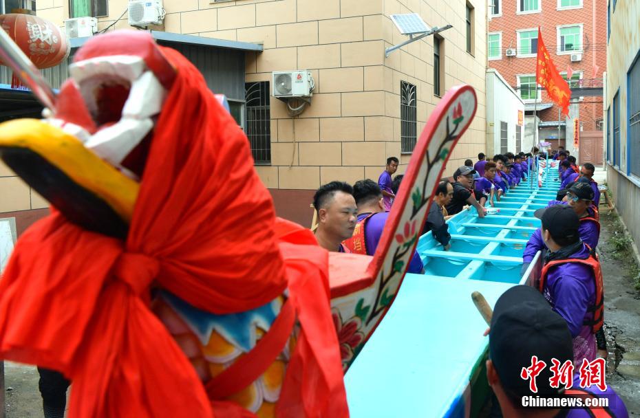 “世界龍舟看中國(guó),中國(guó)龍舟看福州,福州龍舟看方莊?!蔽挥诟=ㄊ「V菔虚}侯縣的方莊村,是中國(guó)最大的龍舟制造村,有著七百多年制作龍舟的歷史。隨著端午節(jié)臨近,方莊村內(nèi)的龍舟制造廠里,工匠們正加班加點(diǎn)趕制端午節(jié)的龍舟訂單。據(jù)統(tǒng)計(jì),目前該村每年能接到超過(guò)200艘龍舟的訂單,總產(chǎn)值約600萬(wàn)元人民幣。圖為5月25日,福州倉(cāng)山螺洲鎮(zhèn)的村民在方莊村迎接訂制的龍舟回村。中新社記者 張斌 攝