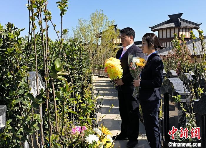 4月2日,大峪山生命紀(jì)念園工作人員介紹草坪安葬區(qū)的情況。俱凝搏攝