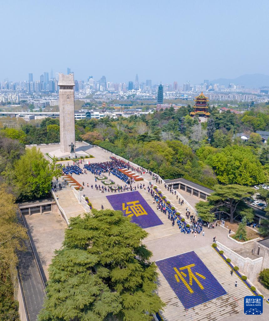 4月2日,各界人士在江蘇南京雨花臺烈士陵園緬懷先烈(無人機(jī)照片)。