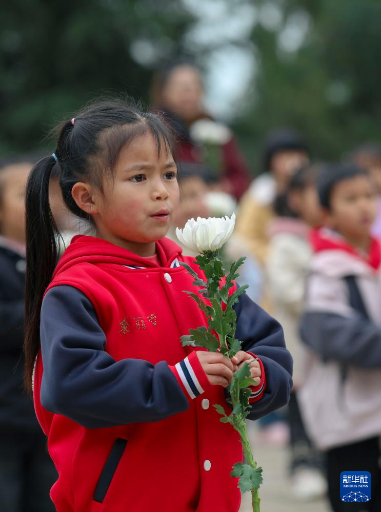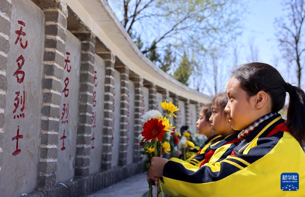 4月2日,河南省濟(jì)源市太行路學(xué)校學(xué)生在烈士陵園向革命先烈敬獻(xiàn)鮮花。