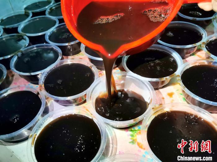 7月25日凌晨,廣東臺(tái)山市,剛煮好濾渣后的茯苓膏被逐一分裝。李曉春 攝
