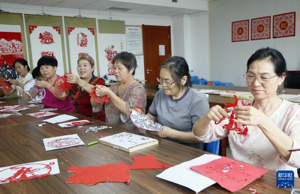 8月26日,在河南省洛陽市汝陽縣人民文化館,剪紙藝人創(chuàng)作七夕主題剪紙作品。新華社發(fā)(康紅軍 攝)