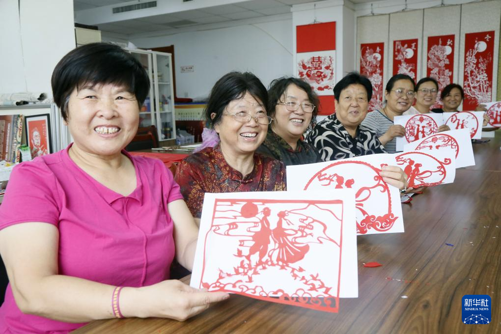 8月26日,在河南省洛陽市汝陽縣人民文化館,剪紙藝人展示七夕主題剪紙作品。新華社發(fā)(康紅軍 攝)